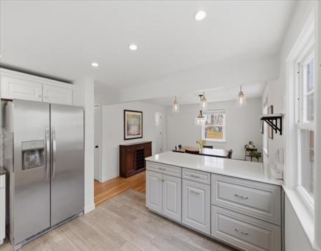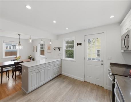 Can you say "curb appeal?" This spacious full dormer Cape blends classic charm with modern updates in one of West Roxbury’s most desirable neighborhoods. The bright, open kitchen features custom cabinetry, brand new stainless steel appliances, quartz countertops, and a center island with stylish pendant lighting, perfect for everyday living and entertaining. Freshly painted interior with oak hardwood flooring and recessed lighting. Modern bathrooms. Improvements include roof 2007 (front) and 2015 (back) vinyl windows, exterior paint (2022). Fully insulated by MASS Save. 2 large bedrooms up with excellent closet space and a guest bedroom down. Bonus, finished basement provides additional living space with brand new luxury vinyl flooring and recessed lighting—ideal for a play space, family room, office, or gym. Lovely, fully fenced yard with private patio for outdoor entertaining. Conveniently located near I-95/128, commuter rail, MBTA, and Legacy Place shopping and dining. Welcome home!