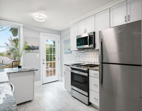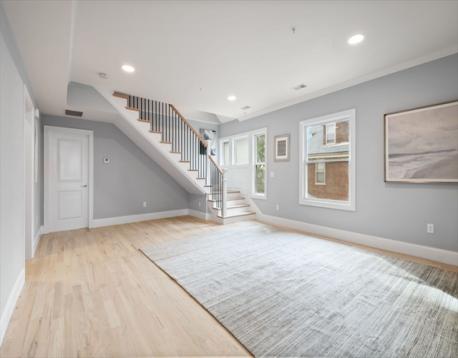 PENTHOUSE DUPLEX in family neighborhood. Tasteful 2025 complete renovation works well for professionals, any growing family and roommates. A thoughtful floor plan ,open concept 3-4-bedroom + home office, 2 full bath home surrounded by landscaped gardens, private walk-out deck primed for piping gas to grill in all seasons. Custom upgrades :intricate woodwork, crown molding, built out cabinetry contemporary kitchen w/ stainless steel/stone, invites dinner parties all 4 seasons. Includes 1 pking and electric charger , as well as new fire alarm system, new electric as well as sewer lines, designed by owner/developer. Additional storage available for 20k, additional basement $100k that come along with this new build in a historical Victorian home. Garage rt $35k left $25k
