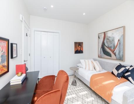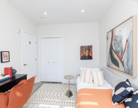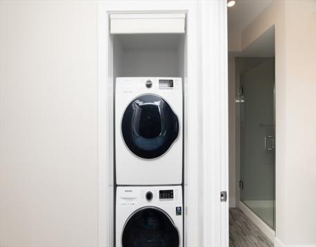 Entrench yourself in a boutique elevator building w/ garage parking at the gateway of Jeffries Point and bordering the Greenway. 70 Bremen St (2018) is a notable address w/ 32 units; Unit 201 offers a well-sized 746 SF layout w/ 2 BR, 1 BA, overlooking the Greenway & featuring a window-filled living space that floods the space w/ natural light. Alcove kitchen include Samsung stainless steel appliances, waterfall quartz breakfast bar & convenient entry closet. Both bedrooms provide ample closet space & accommodate queen beds; hallway w/ in-unit laundry. Spacious bath w/ custom shower completes the modern aesthetic. HW Flooring and central heat/ AC. Enjoy close proximity to the Maverick MBTA, harbor-front dining, parks & activities, plus ~10 min commute to downtown. Prof managed association w/ lobby space, mail/package area & deeded garage parking (#12) included. Condo fee includes heat and hot water!