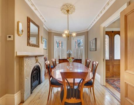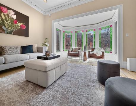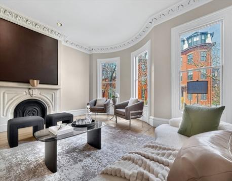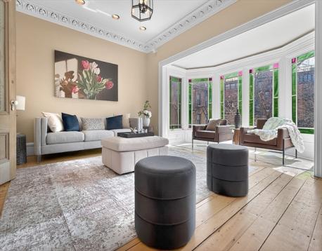 A truly rare opportunity directly facing onto Montgomery Park — one of the South End’s most coveted private and picturesque green spaces — 70 Montgomery St. is a stunning single-family townhouse offering rare park-side living in the heart of Boston and accessible to just a few. A dramatic three-story bay window brings natural light and sweeping park views across multiple levels. Indoor and outdoor living blend seamlessly, with direct garden-level access to the park and an expansive kitchen-level balcony perfect for morning coffee and evening sunsets. Victorian charm abounds, rich in period details, including a gracious double parlor, elegant ceiling medallions, ornate intricate plasterwork, marble mantels, etched glass doors in both the parlor and entry, and beautiful pine floors. The upper floors offer three bedrooms, two-and-a-half bathrooms, skylights, and a dedicated laundry room. On the garden level- a studio provides living space for an au pair/guest and remarkable wine cellar.