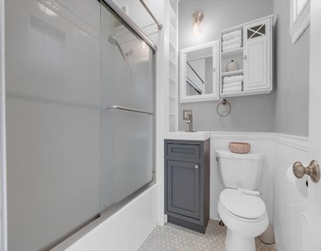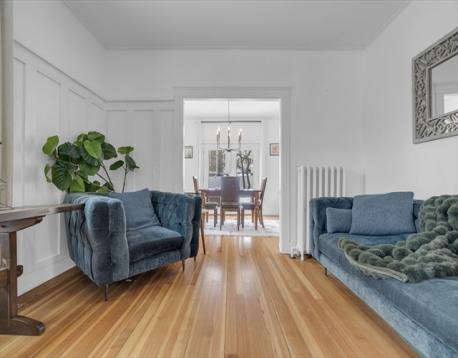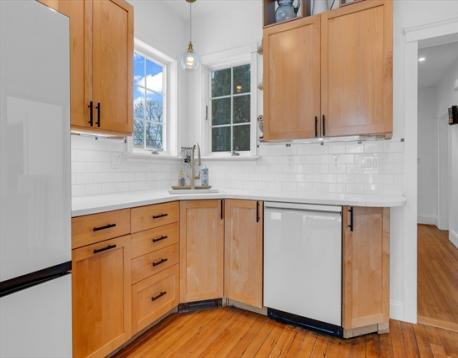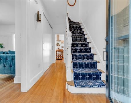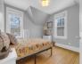 Beautifully maintained 3-bed, 2-bath Colonial with BONUS detached studio on a generous lot along a quiet, tree-lined street. A welcoming mudroom/sunroom opens to a character-filled main level with soaring ceilings, refinished hardwood floors, and detailed woodwork. Living and dining areas flow seamlessly for easy entertaining. Updated kitchen features sleek stainless appliances, quartz and bamboo countertops, and stylish finishes. Full bath and laundry complete the first floor. Upstairs offers a spacious primary bedroom with ample closets, 2 additional bedrooms, and a renovated full bath. Partially finished lower level provides flexible space plus pantry, sink, and refrigerator. Glass sliders on the main level lead to an oversized deck and fully fenced yard with mature trees. The detached studio is ideal for an office, artist's haven, or potential for ADU (buyer to verify). Blending a suburban feel with urban amenities in a convenient commuter location, this home is a rare offering!