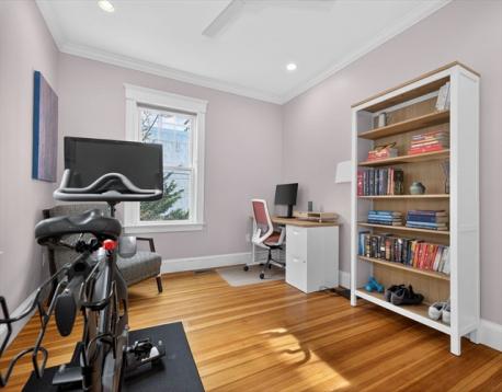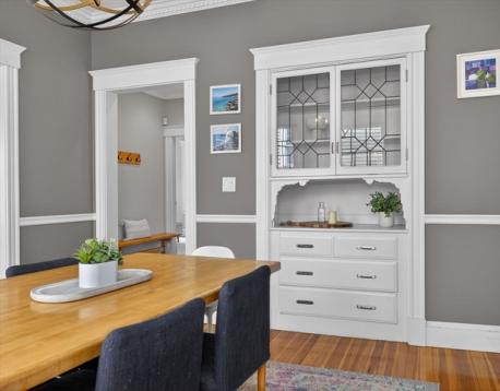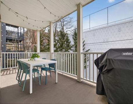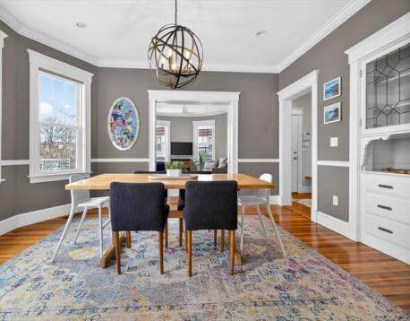 Pondside living at its best! This spacious 3-bedroom,1.5 bath w/ garage parking has it all. Sunlight fills this elevated second floor condo as the inviting entry leads to a living room featuring an ornate gas fireplace, bow windows, & pocket doors that open to a dining room with a leaded-glass built-in hutch & dental crown molding. The eat-in kitchen with maple cabinetry & stainless-steel appliances offers direct access to a large exclusive back deck. High ceilings, wood floors, & original details add classic character throughout. Amenities include central A/C, in-unit laundry, three parking spaces -including one heated garage space -private storage, & both front / rear decks. Numerous updates throughout the unit & building complete the package. Ideally located just minutes to Jamaica Pond, the Emerald Necklace, Longwood Medical Area, Whole Foods Market, restaurants, and Brookline Village—this is a rare opportunity combining space, convenience, and parking in a prime location!
