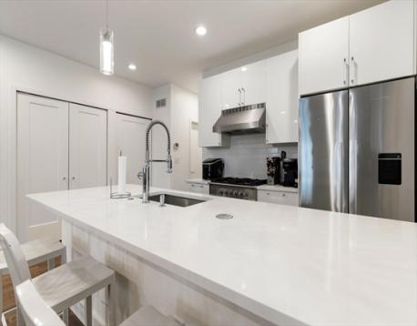 CHIC CITY POINT DUPLEX | This stunning duplex offers the feel of a single-family home with its own private entrance and spacious layout. Step into the entry level, where an inviting open-concept seamlessly blends the living room and kitchen, creating a perfect space for entertaining or relaxing. The chef's kitchen features a large island with quartz countertops, custom cabinetry, and a Fisher & Paykel appliance package. The entry level is complete with two bedrooms and two full bathrooms, including the primary bedroom with an en-suite bathroom and a walk-in closet outfitted with premium closet systems. Downstairs, discover two more generously sized bedrooms and another full bathroom, providing ample space for family, guests, or a home office. This unit also includes a large deeded storage room and a private outdoor space. Convenient location within close proximity to local Southie favorites along Broadway, access to I93, I90, and many bus routes!