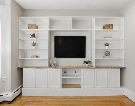 Welcome home to this gorgeous 3-bedroom, 2-bath condo on Wyman Street in Jamaica Plain, blending old-world charm with modern amenities. The heart of this residence unfolds in an inviting open floor plan, with kitchen and living room providing an ideal layout for cooking or casual gatherings. Adorned with elegant stone countertops and pristine shaker cabinets, the kitchen features a huge peninsula and a stylish island range hood, complemented by a convenient kitchen bar. This spacious area extends to the living room, a comfortable retreat enhanced by thoughtfully integrated built-in shelves, offering both display and storage solutions. Other features include private rear deck, 2 unobstructed driveway parking spaces, two levels of living space, a bonus family room, and in-unit laundry hookups. Located close to Green & Orange lines, Whole Foods, Jamaica Pond, and more!