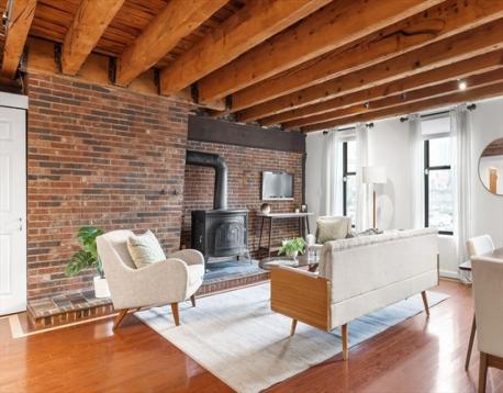 Classic Boston style meets modern amenities. This Brick and Beam loft-style condo features 2 bedrooms and 2 bathrooms with Central Air-Conditioning and In-Unit Laundry. The kitchen opens across a wooden bartop with seating for 4 to an expansive living room with a rustic wood stove and space for a dining table. This unit has high ceilings, significant storage space, and a primary bedroom with en-suite bath. Elevator Building. Private Storage. Moments from the heart of the North End, Faneuil Hall, North Station, and the West End.