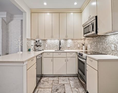 HIGHLY DESIRABLE BACK BAY LOCATION for an oversized one bedroom garden level unit on beautiful Marlborough Street! Features include hardwood floors in living and bedroom areas and Bulgarian stone floors in the kitchen and bathroom. Very high ceilings and tall windows in living and bedroom. Sunny Living Room faces Marlborough Street with a fireplace and exposed brick wall with a stunning garden view with mature plantings. Garden is exclusive use for this unit. Large Primary Bedroom has a built-in desk or storage unit and great closet space. In unit washer/dryer. Updated kitchen and bath. One tandem parking space in rear of building is included. Mini split A/C. There are 2 exclusive use storage closets outside of the unit. Enjoy all Back Bay has to offer with The Charles River footpath around the corner, Newbury Street shopping and dining 2 blocks away, as well as the Boston Common! Commonwealth Ave Mall one block away. This is a must see home! Leased through 8/31/26.