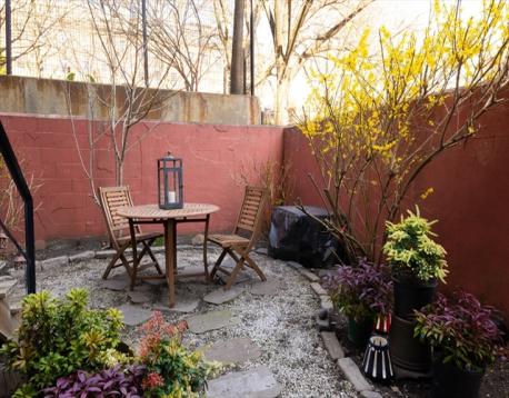 Tucked beside Ringgold Park in the sought-after Eight Streets neighborhood, this 710 sq ft one-bedroom, one-bath home offers rare indoor-outdoor living. The bright open living and dining area overlooks a landscaped garden with tranquil park like views, creating a calm, inviting setting. The updated kitchen is appointed with quartzite countertops, stainless steel appliances, and direct access to an oversized private patio—an exceptional space for outdoor dining, entertaining, or quiet relaxation. Inside, the spacious bedroom features a large walk-in closet, while a dedicated home office and custom-built storage closet provide valuable flexibility and organization. Hardwood floors run throughout, and in-unit laundry adds everyday convenience. This pet-friendly building is located moments from the area’s well-known boutiques, cafés, and restaurants. 75 Waltham Street combines a desirable location, functional layout, and private outdoor space—an exceptional buying opportunity.