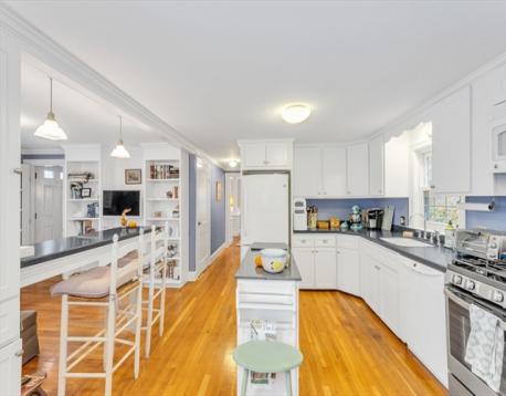 Charming and move-in ready Cape-style home offering the perfect blend of character and modern updates! The inviting first floor features an open-concept layout with a beautifully updated kitchen, convenient first-floor laundry, and a cozy sitting room with custom built-ins. The spacious living and sitting room are enhanced by plantation shutters and updated Harvey picture windows that fill the home with natural light. A full bath completes the first level. Upstairs offers two comfortable bedrooms and an updated half bath, providing a great layout for today’s lifestyle. Additional highlights include A/C, garage under with ample basement storage and a private rear deck with side entrance—ideal for relaxing or entertaining. Located in a highly convenient neighborhood within walking distance to the commuter rail, Trader Joe’s, restaurants, shops, and Billings Field. With numerous updates throughout and true turn-key condition, this home is ready to welcome its next owner!