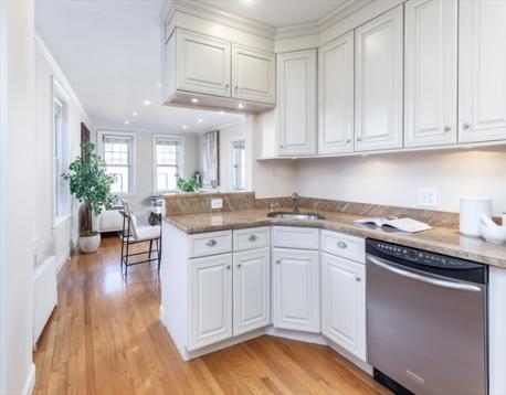 Bright Beacon Hill 2-bedroom condo with three exposures and abundant natural light. Hardwood floors throughout, two true bedrooms with ample closets, and a marble bath with a washer/dryer combo. The kitchen features granite counters, stainless steel appliances, gas cooking, dishwasher, and a fabulous breakfast bar that opens to a large living/dining room with recessed lighting. Building amenities include a common roof deck with stunning Charles River views, new roof (2022), common laundry and laundry in unit, private storage, and professional management. Ideally located steps to Charles St via the Putnam Ave shortcut, near MGH, Whole Foods and more. Heat and hot water included in the condo fee. Unit feels larger than its listed square footage. First Open House Saturday and Sunday 12-1:30pm. Offers if any due Monday at noon.