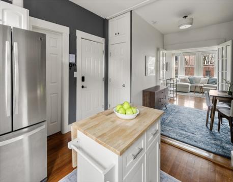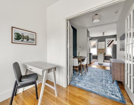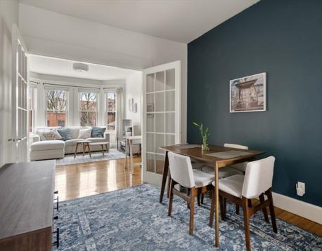 This large sunny one-bedroom condo is on the 2nd floor. Great layout has separate dining & living areas, and space for a home office. Large bay with oversized windows, hardwood floors throughout. Eat-in kitchen has gas cooking. New laundry in unit. Beautiful common ROOF DECK with sweeping city views. Professional management. Pets OK w/ restrictions. Convenient to Back Bay, Longwood Medical Center and Boston Medical Center. Easy access to public transportation and the South End's best restaurants, cafes and shopping. New roof and roof deck in 2024. Taxes do not include residential exemption of $4353.