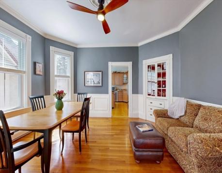 This inviting 2+BR offers the style & sophistication expected of an urban condo with generous room proportions in a highly desirable neighborhood. A distinct entry provides an ideal work-from-home space, while French doors open to a gracious living room with high ceilings & oversized windows. The spacious dining room easily welcomes entertaining or gathering. The eat-in kitchen features plentiful cabinetry, in-island stove, pantry closet & pendant lighting. The primary bedroom is your retreat with decorative mantel, walk-in closet & large private deck. The second bedroom is adorned with a shiplap accent wall, generous closet & reading nook. The slate-tiled bath provides a spa-like feel with heated floors, built-in shelving, large closet & deep soaking tub. Additional amenities: AC/mini-splits, private basement washer/dryer & storage. All set within an impeccable Victorian with a landscaped shared fenced yard near the T, Southwest Corridor, Whole Foods & JP’s vibrant shops & restaurants