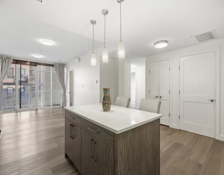 Welcome to the Cosmopolitan- nestled in Boston's energetic south end! Being a resident at the Cosmopolitan, not only do you have an onsite attendant greeting you at the door but is handicap accessible, has a private gym & outdoor garden. Enter through the main entrance, where you'll find the attendant desk where all major packages can be received. Make your way down the hallway to the smaller lobby which you will take the elevator to the third floor. Enter unit 304 where you will find open concept living, high ceilings, & natural light beaming through the large windows. The modern kitchen has ample cabinet space, stainless steel appliances & spacious kitchen island perfect for entertaining. Step out onto your private balcony off of the living room to enjoy your morning coffee. Condo has two carpeted bedrooms, both with ensuite bathrooms. Primary bedroom is larger in size. has its own private balcony as well as a custom walk in closet! The only thing you need to do is just move in!