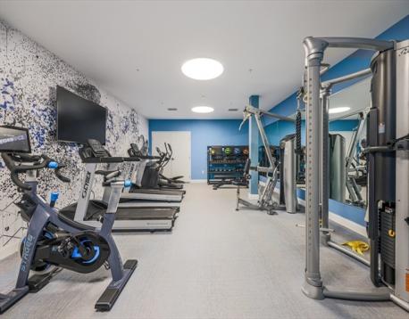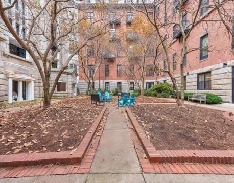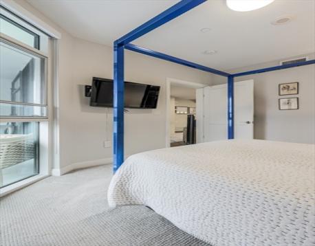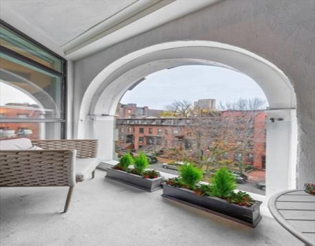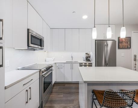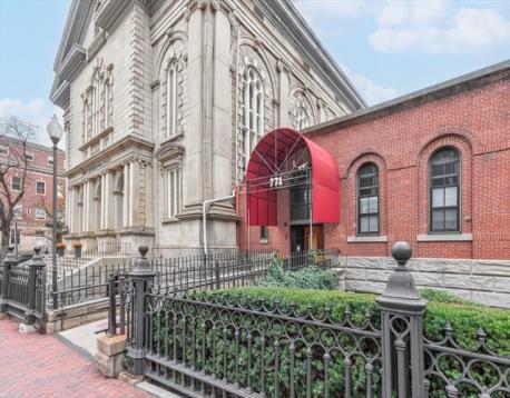 Stunning, luxury 1 bed 1.5 bath condo in the Cosmo building, a one-of-a-kind 2021 condo conversion of the Church of Immaculate Conception. Take the elevator up to the 4th floor and enter your bright white kitchen with Bosch appliances, quartz countertops, under-cabinet lighting, and soft-close drawers. Generous 1/2 bath for guests. Open concept floorplan! Enjoy breakfast at your kitchen island, host dinner parties in your dedicated dining space, then "Netflix and chill" in your spacious, light-filled living room. Overlooking the tree-lined street and featuring one of the church's arches (a fabulous architectural detail), your private, covered balcony allows you to enjoy the city vibe all year round. Primary suite features a walk-through closet and high-end bathroom with soaking tub and separate shower, plus double sinks. In-unit laundry and thoughtful storage space throughout. Building amenities include gym, dog washing station, event space, and peaceful outdoor courtyard. Don't wait!
