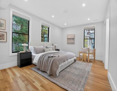 Don’t miss this new construction penthouse in the center of South Boston with deeded parking! Built in 2023, this 3 bed + den, 2 bath duplex offers 1,787 sq ft of light-filled living space, featuring white oak floors, sleek matte black cabinetry, Vezzano quartz countertops and backsplash and floor to ceiling windows. Down the hall is the primary suite which accommodates a king bed and includes ample closet space, a double vanity, rainfall shower, radiant heated floors, and a private balcony. Two additional bedrooms + full bath are also located on the main level. Upstairs, a versatile den—ideal for an office, gym, or guest space—opens directly to an expansive private roof deck, creating seamless indoor-outdoor living with sweeping city views. Additional highlights include central AC, in-unit laundry, smart thermostats, and secure building access. Located right around the corner from Thomas Park, West and East Broadway's shops and restaurants and the beach.