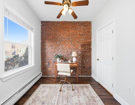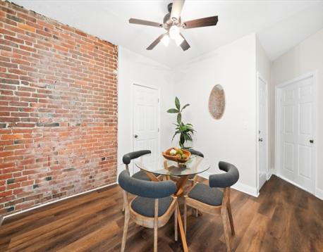 This sun-filled condo row house offers scale, character, and flexibility rarely found at this price point. Spanning approximately 1,550 sq ft, the home features three well-proportioned bedrooms, a gracious living room anchored by a striking blue tile fireplace mantel, and large bay windows that flood the space with natural light. A separate dining room creates a true sense of flow and makes entertaining effortless, while the stainless steel kitchen—complete with a serving window—connects functionally to the heart of the home. Mostly renovated in 2018 with additional updates including a new hot water heater (2022), new shower, refreshed floors, and fresh paint, the space has sweet charm and modern reliability. The home is complemented by nearby parks and recreation, ideally positioned near the Jackson Square T, Horatio Harris Park, and everyday essentials, designed for those who value proximity to downtown, room to host, and a comfortable space for hybrid-work lifestyles.