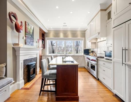 Tucked away on a private cul de sac in the fashionable and historic “Flat" of Beacon Hill, 8 Otis Place is a rarely available and magnificent townhome complete with an elevator, multiple private outdoor spaces, and parking at your front door. Its layout caters wonderfully to entertaining, featuring a comfortable family room with walkout access to the beautiful outdoor patio and backyard, a gourmet eat-in kitchen, elegant dining room, and a formal living room with lovely views of the river. The top-level media room/ home office features a half bath and wet bar and opens to a deck with fabulous views of Beacon Hill. Take one flight up to the stunning roof deck with outstanding views of the Charles River and City beyond. Additional features include a luxurious primary suite, mudroom, laundry room, and a fitness room/bonus room. This home is enveloped by Beacon Hill’s renowned, charming character and is steps from the Public Garden and the fine boutiques and restaurants of Charles Street.