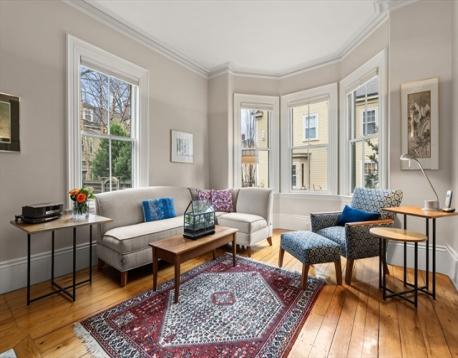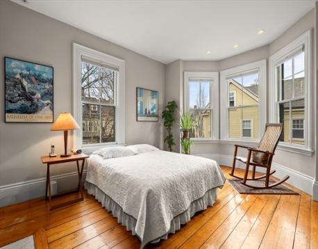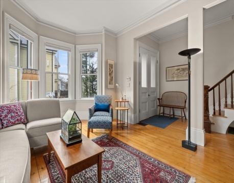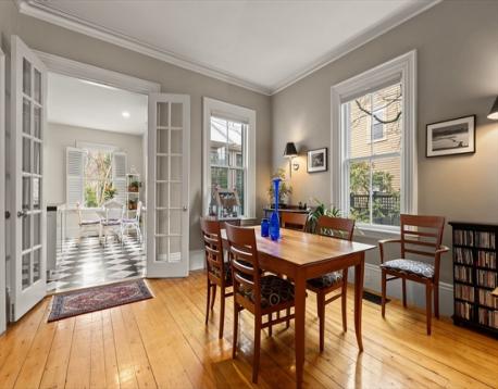 Victorian elegance and thoughtful renovations define this highly sought-after, rarely available central JP condo. Ring the antique doorbell and pass through etched glass foyer doors into a gracious entertaining space. Living room with bay windows and marble fireplace, formal dining room with French doors opening to an eat-in kitchen appointed with marble, granite, and stainless. A sunroom overlooking the lush yard offers the perfect spot to relax with coffee or a book year-round. The upper 2 levels provide flexibility for bedrooms, offices, and creative spaces including primary suite with walk-in closet, rear bedroom with loft, and vaulted 3rd floor. Additional highlights include 2 bathrooms in tile and glass, custom built-ins, crown moldings, decorative medallions, professionally landscaped fenced yard, AC, updated systems, and off-street parking. Enjoy the prime location tucked at the back of a secluded square moments to Centre St, the Orange Line, and Jamaica Pond.