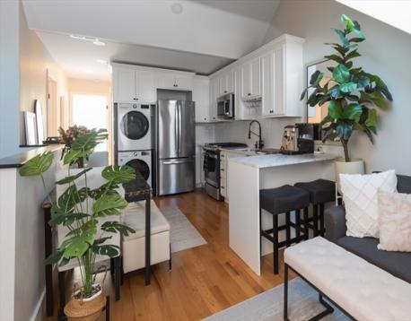 Penthouse living in the heart of Charlestown! This sun-splashed 2 bed, 2 bath home blends timeless Federal-style charm with modern luxury at an exceptional value. A welcoming entry opens to a bright, open-concept living and dining space designed for both relaxing and entertaining. The stunning renovated kitchen features quartz countertops, stainless steel appliances, a center island with breakfast bar, and abundant cabinetry. Step outside to your expansive private walk-out deck with sweeping views—perfect for morning coffee, summer dinners, or hosting friends. Enjoy central air, in-unit washer/dryer, private basement storage, and a low $175/month condo fee. Beautiful Hardie cedar impression siding and Marvin windows elevate the exterior. Just steps to the Monument, top restaurants, parks, public transit, and across from the transformative Bunker Hill redevelopment. Strong rental potential and long-term upside—don’t miss this rare opportunity!