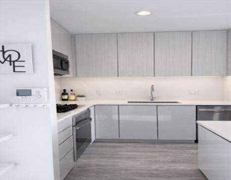 Turnkey 1BR steps from Longwood Medical Area - ideal for incoming residents, fellows with parking! Luxury living meets thoughtful design in sun-filled 7th-floor 1BR/1BA at Mosaic in Longwood Medical Area, steps from Emerald Necklace trails, Jamaica Pond, Fenway restaurants and retail & the Green Line. Beautifully updated home features new hardwood floors, elegant countertops, stainless steel appliances and gas cooktop. Equipped w/ smart home technology, in-unit washer/dryer, & individually controlled year-round heat & A/C. Open layout w/ ample storage & dramatic floor-to-ceiling windows with natural light, providing stunning sunset views. Spacious bedroom fits a king bed, with a large walk-in closet and spa-like bath with lighted vanity and glass shower. Full-service LEED Silver building offers 7-day concierge, 24/7 fitness center with yoga room, rooftop clubroom and deck with grills, and bike storage. Garage parking now included! Offered furnished if desired.
