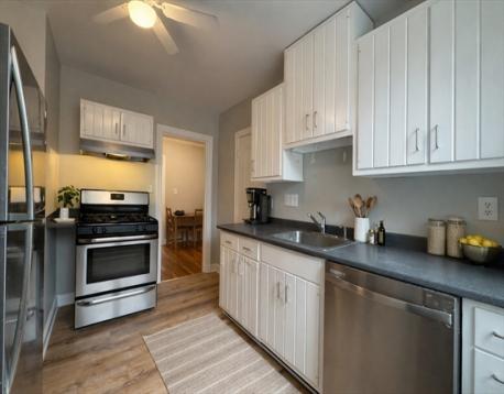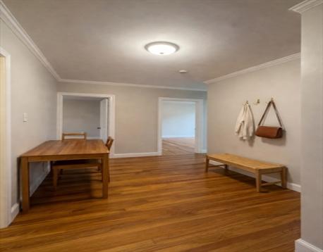 Bright and sunny two-bedroom condo in a great location near Cleveland Circle and the Brookline line. Freshly painted with new kitchen flooring, this home offers a spacious living area with large windows and plenty of natural light, providing ample space for a seating area and dining table. Both bedrooms have good closet space. The eat-in kitchen opens to a semi-private deck. Hardwood floors, high ceilings, in-building laundry, and deeded off-street parking add to the appeal. Close to the MBTA Green Line, Route 9, shops, restaurants, Boston College, Boston University, and Longwood Medical Area. Property is sold as is.