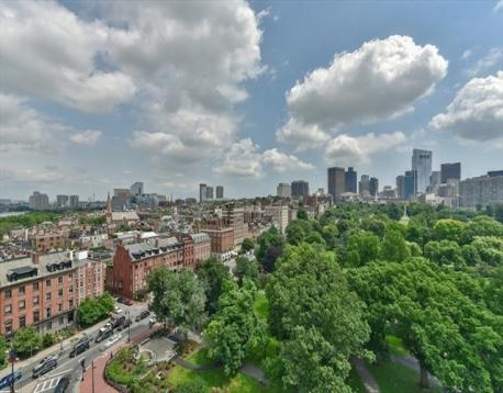 Located in a premier concierge Coop building on the Flat of the Hill with spectacular Boston Common, Public Garden Views. Elegant 3,300-square foot, 4 bedroom floor-through residence spans the entire eighth floor, offering breathtaking views of the Public Garden and Back Bay skyline. 45 Feet Wide Building, this home features direct elevator access, front-facing entertaining spaces—including a formal living room, dining room, and library (or 4th bedroom)—all with stunning scenery. The updated and spacious chef’s kitchen has gas cooking and boasts an open concept with double ovens and wine refrigeration for added convenience. Five fireplaces, separate laundry room, and ample storage complete this rarely available layout in one of Boston's most sought after buildings. Live in super and 24 Hour Concierge. One Deeded Garage Parking Included Brimmer Street Garage. Live like a single family home on one floor. Steps from Charles Street and Newbury Street Shopping.