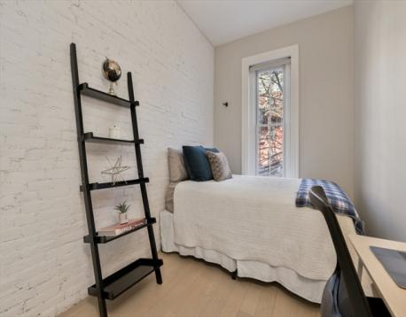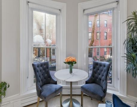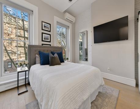 Rare parlor-level, two-bedroom floor through on one of the South End’s most coveted streets. This spectacular residence blends historic charm with contemporary refinement — soaring ceilings, exposed brick, and an original decorative fireplace create a dramatic, welcoming centerpiece for the open-concept living, dining and kitchen. The chef’s kitchen is beautifully appointed with premium appliances, an abundance of cabinetry and Opus White stone countertops. The primary bedroom offers generous closet space with additional overhead storage and two large windows allowing for ample natural light. A well-proportioned 2nd bedroom comfortably accommodates both a queen bed & home office. Just off the bedrooms, a renovated full bath featuring an oversized walk-in shower and modern fixtures. Additional features include central A/C and in-unit washer/dryer. Ideally located just steps from Ringgold Park & all of the South End’s finest restaurants, galleries, and daily conveniences. A must see!