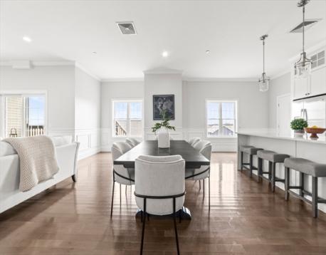 Welcome to this stunning 4-bedroom, 3-bathroom penthouse home in South Boston’s desirable City Point! Spanning 2,376 square feet, this spacious residence is designed for effortless living and entertaining, with an open-concept living and kitchen area featuring a private deck + roof rights, a gas fireplace, high ceilings, and oversized windows that flood the space with natural light. The sleek kitchen boasts stainless steel appliances, quartz countertops, and a large island, perfect for gathering. Two of the generously sized bedrooms include walk-in closets and en-suite bathrooms, offering a private retreat within the home. An additional full bath and two more bedrooms provide flex space for a family, friends, or a home office. The home also features two garage parking spaces (tandem), in-unit laundry, ample storage, a brand new hw tank and furnace. Located just moments from Castle Island, M Street Beach, this exceptional home is an exceptional find.