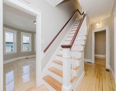 Stunner of a 2-Family on Brighton side street perfect opportunity for owner-occupant or investor. Close to MBTA, St. Elizabeth's hospital, Brighton Center, Boston Landing. Remodeled from 2022-2025, New roof, vinyl siding, Harvey vinyl windows, new heat/AC (first floor only), kitchens, gleaming hardwood floors, walls, electric and plumbing. First unit has a living room with a fireplace (non-working) and decorative stained glass, large dining room, kitchen w/pantry, full bath, one bedroom on first floor and two additional bedrooms on floor two and in-unit laundry. Unit two has a living room with a fireplace (non-working) and decorative stained glass, large dining room, kitchen w/pantry, in- unit laundry on floor two and four spacious bedrooms and a full bath on floor three. Owner credit of $5,000.00 towards appliances. Come see this amazing home in the heart of Brighton.