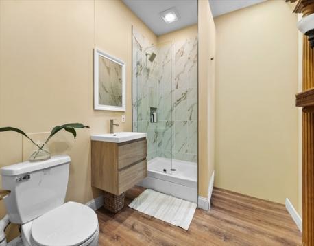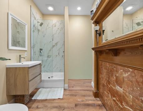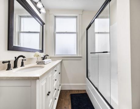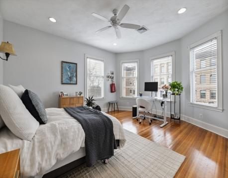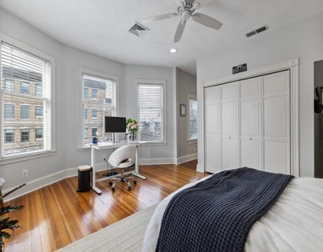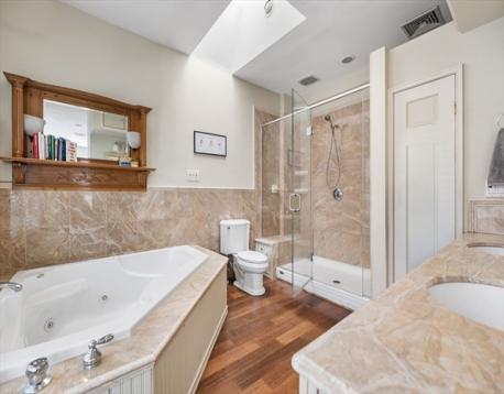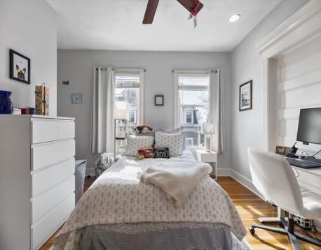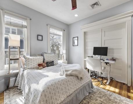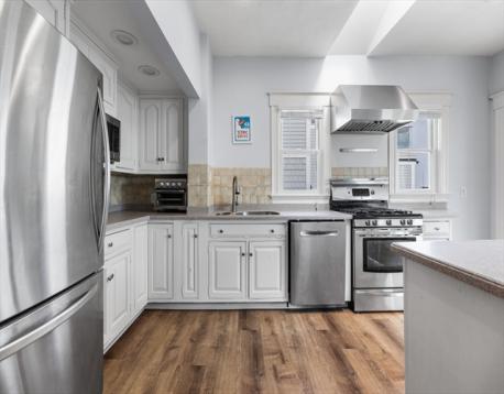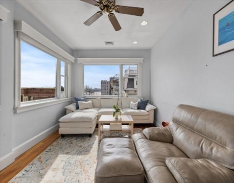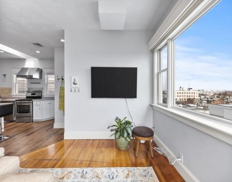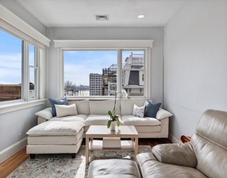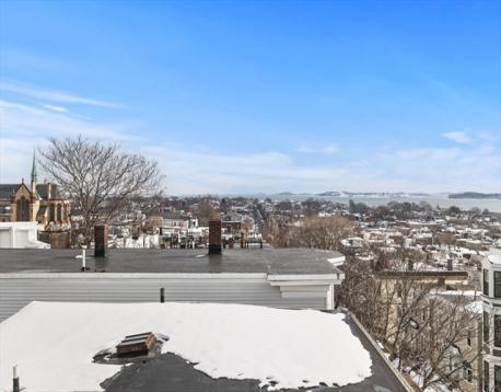 Rarely available Thomas Park penthouse with ocean views and deeded garage parking just under 2,000 sq ft! This top floor unit in a detached multi-family presents an open living concept featuring a large kitchen with stainless steel appliances, tile backsplash, an island plus pantry for additional storage and a spacious living room with panoramic views of all of South Boston. Four exposures including skylights providing an abundance of natural light throughout the unit. Four King sized bedrooms including massive front facing ensuite offers double marble vanity, glass enclosed shower & jacuzzi tub. Two full recently renovated guest bathrooms. Additional features consist of central air, hardwood floors, in unit laundry room, deeded storage, recessed lighting throughout, roof rights and well-maintained systems, including a commercial grade HVAC to support expansion. Fully leased through 8/31/26 at 6,600 monthly, garage spot is rented separately at $400 monthly; $7,000 total.