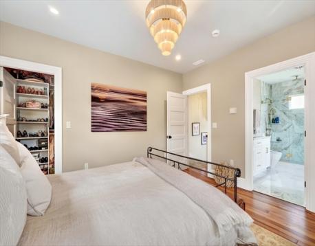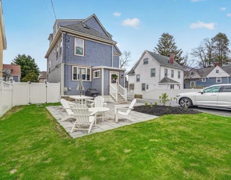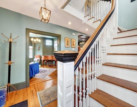 Completely renovated in 2024, this stunning Victorian in the desirable Highland neighborhood blends timeless character with modern luxury. Elevated with exceptional custom designer finishes throughout, enhancing the home’s original charm. An inviting covered front porch leads into a grand foyer with high ceilings, original moldings, leaded glass windows, and a striking staircase. Elegant, and light-filled living spaces flow into the chef’s kitchen featuring high-end appliances, quartz countertops, a large island, built-in bar area, half bath, and mudroom. 2nd floor has 3 bedrooms, including a luxurious primary suite with walk-in custom closet and laundry room. The cathedral-ceiling 3rd floor includes 2 additional bedrooms and a full bath. Finished lower level provides additional living space with a new gas stove. Outside, enjoy a landscaped yard with stone patio, 5-car driveway, and EV charger. 4 floors of turn key space. Walk to commuter rail and Centre Street shops + restaurants.