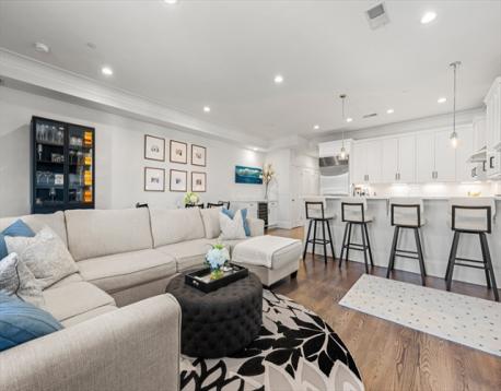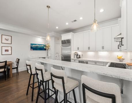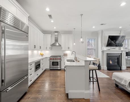 Ideally situated on the East Side, this impeccably maintained 1,321 sq.ft. residence offers a rare combination of space, functionality, and convenience in one of South Boston's most sought-after locations. Just moments from beaches, parks, restaurants, and the Seaport, it delivers the best of city living with a true neighborhood feel. The open-concept kitchen is appointed with all stainless steel appliances, a Sub-Zero refrigerator, and Wolf range, flowing seamlessly into a sun-filled living and dining area with a fireplace, custom bar cabinetry, and access to a private deck perfect for entertaining. Two generously sized bedrooms include a primary suite with an en suite bathroom and custom walk-in closet. Additional highlights include central air, in-unit laundry, ample storage, and private basement storage. Direct access to two parking spaces rounds out this turnkey offering.