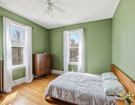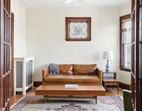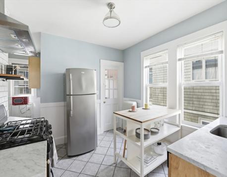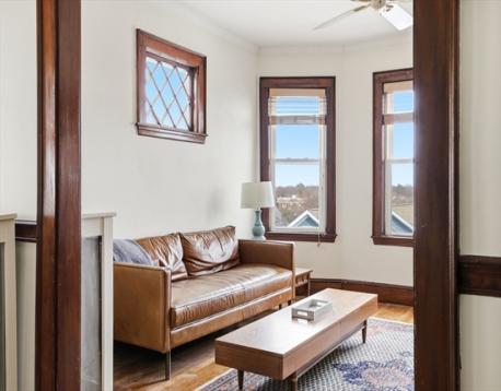 Prime Jamaica Plain location, nestled between the peaceful Arnold Arboretum and the lively Centre Street shops. This stylish 2/3-bedroom condo blends modern comforts with classic charm, offering expansive treetop and city views. A welcoming foyer with French doors opens into the beautifully appointed cherry wood living and dining rooms, both featuring lovely bay windows. The updated eat-in kitchen is bright and functional, with stainless steel appliances, marble countertops, subway tile backsplash, and a pantry for added storage. The condo includes two spacious bedrooms, plus a third currently used as a home office/den. Hardwood floors throughout, a newly built back porch, and shared parking for two cars complete the package. You'll also enjoy newly installed full sizedlaundry in the basement, a dedicated storage area, and a large shared yard. This is a must-see property!