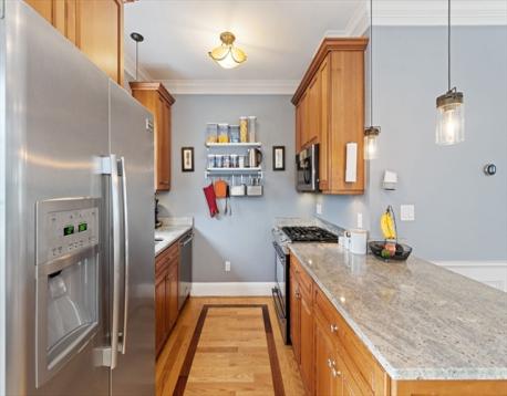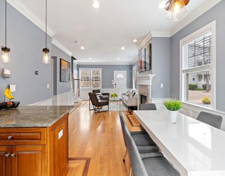 Situated in the heart of Adams Village with approximately 2,100 square feet of living space across four levels, this three-plus bedroom, three and a half-bathroom townhome offers an impressive array of features. The open-concept layout seamlessly integrates the living, dining, and kitchen areas, creating an inviting and versatile space. The primary suite boasts a walk-in closet with custom shelving, plus a skylit en-suite bathroom with dual vanity, soaking tub and separate shower. The finished basement adds additional living space and flexibility, with a built-in entertainment center, bonus room and additional full bathroom. Stainless steel appliances, Nest thermostat, and a whole-house vacuum system contribute to the home's modern amenities, while the two-car parking and private outdoor space provide convenience and enjoyment. The village center location boasts quick access to both Ashmont Station and the highway, in the center of one of Boston’s most desirable walkable neighborhoods.
