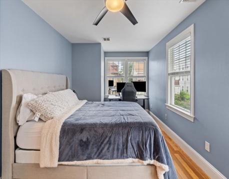 Situated in the heart of Adams Village with approximately 2,100 square feet of living space across four levels, this three-plus bedroom, three and a half-bathroom townhome offers an impressive array of features. The open-concept layout seamlessly integrates the living, dining, and kitchen areas, creating an inviting and versatile space. The primary suite boasts a walk-in closet with custom shelving, plus a skylit en-suite bathroom with dual vanity, soaking tub and separate shower. The finished basement adds additional living space and flexibility, with a built-in entertainment center, bonus room and additional full bathroom. Stainless steel appliances, Nest thermostat, and a whole-house vacuum system contribute to the home's modern amenities, while the two-car parking and private outdoor space provide convenience and enjoyment. The village center location boasts quick access to both Ashmont Station and the highway, in the center of one of Boston’s most desirable walkable neighborhoods.
