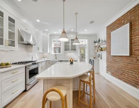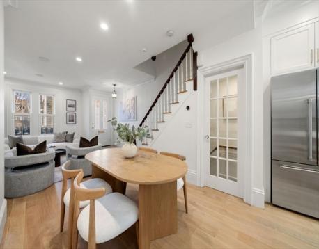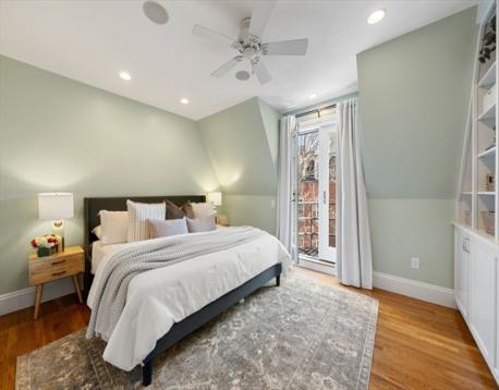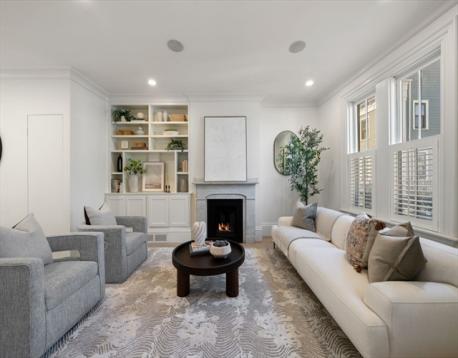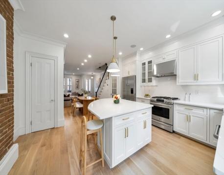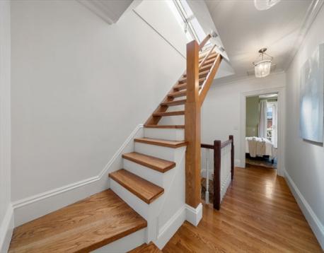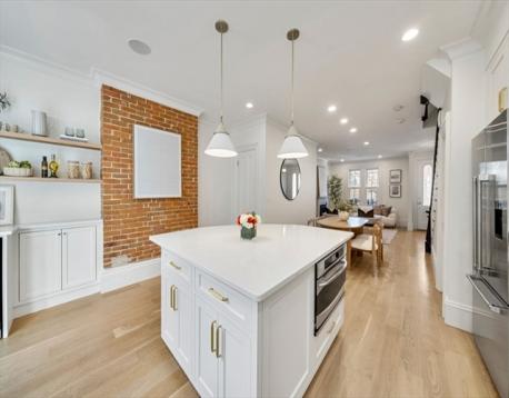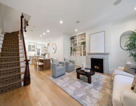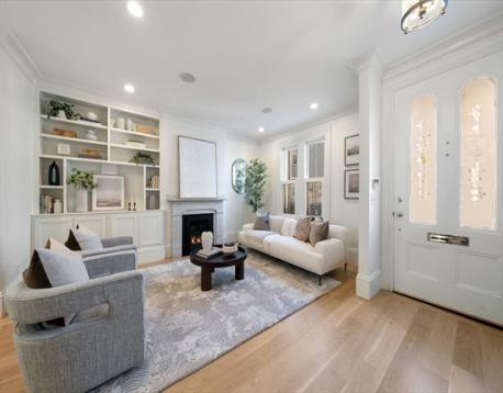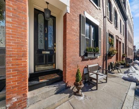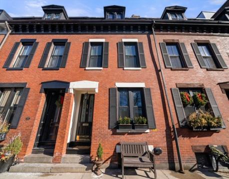 This stately, 4+BR/3.5BA, brick victorian is ideally situated near Monument Square and offers 2,782sf on four curated levels. The sunny main floor features beautiful 5” white oak flooring and a desirable open layout. The elegant living room w/gas FP with marble mantel and custom built-ins, flows to a dining area and updated chef’s kitchen w/quartz countertops, center island w/bar seating and custom bar w/wine fridge - perfect for entertaining. Directly off the kitchen is a private deck and stone patio w/garden area and egress to Cross Street. The second floor features original pine flooring and two expansive bedrooms w/marble mantels and well appointed full bath w/tub. The top floor features a spacious primary bedroom w/Juliette balcony, custom cabinetry/closet, and stunning ensuite bath w/heated marble floor. A versatile fourth bedroom/office and staircase for roof access completes this floor. A finished lower level offers media/gym space, patio access, and large storage/utility room.