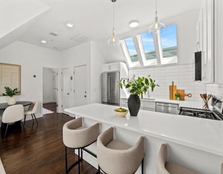 Welcome home to your own piece of the sky in Jones Hill. This sun-drenched penthouse condo is a rare find, filled with natural light from stunning skylights that make the space feel open, airy, and inviting. Inside, you’ll find gleaming hardwood floors throughout and a beautifully updated kitchen featuring white shaker cabinets, quartz countertops, a crisp tile backsplash, and stainless steel appliances. Whether you’re cooking, entertaining, or enjoying a quiet morning, this space delivers.Additional highlights include in-unit laundry and access to a shared backyard, offering the comfort and functionality of a home with the ease of condo living. Located in one of Dorchester’s most sought-after neighborhoods, Jones Hill is known for its tree-lined streets, local restaurants, nearby parks, and convenient access to public transit and major highways. Penthouse units like this don’t come around often, don’t miss your opportunity.