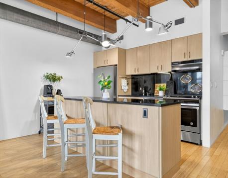 Experience style and sophistication in this stunning brick-and-beam home at the coveted Court Square Press. This classic industrial residence features an open-concept kitchen with sleek modern cabinetry, stone countertops, stainless steel appliances, and ample storage. Soaring ceilings and oversized windows fill the space with natural light, highlighting its distinctive character. The spacious living area allows for an office nook, dining table, and full seating setup. The bathroom offers hexagonal tile flooring, subway-tiled walls, granite vanity, and a soaking tub. Hardwood floors throughout and in-unit washer/dryer. Enjoy full-service living with 24/7 concierge, fitness center, rooftop pool and terrace with sweeping views of the city, grilling stations, media room, and on-site management. Prime location near the Seaport and across from the Broadway T.