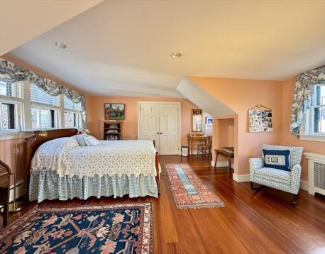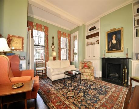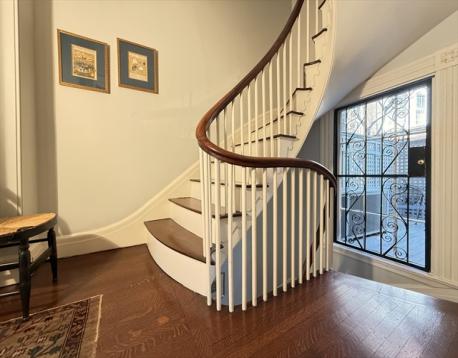 This historically significant townhouse was built in the Greek Revival style in 1834 by Asher Benjamin. The house was owned by Benjamin’s heirs until 1925 and was rented to the family of the well known landscape architect Arthur Shurcliff for many years. The home has five bedrooms, a beautiful living room with floor to ceiling windows and great light, a formal dining room, a deck, and a spacious kitchen looking out on a small garden. The home has had a number of updates over the years, including the addition of an exterior iron balcony. A lovely wide staircase winds through the lower four floors. This gem is one of the prettiest houses on Beacon Hill.