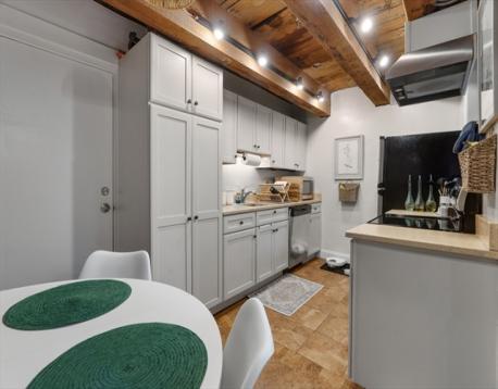 Perfect Investment Opportunity! Low Condo Fee of $307/mo. Located on a highly desirable tree-lined block, this oversized North End Waterfront 1 bedroom offers living space on two levels! Featuring historic charm throughout, the 780 SF unit has exposed brick, wood beams and high ceilings. A spacious bedroom has a wall of closets and leads to a bonus study nook with built-in bookshelves that perfectly fits a desk or chaise. The cozy living and dining area has a fully applianced kitchen with additional storage closet and laundry is adjacent to unit. 90 Commercial is a PET FRIENDLY, professionally managed building steps from the Greenway, Faneuil Hall, Financial District Offices, Harbor, Orange & Blue MBTA and Rt. 93. Close proximity to Golden Goose Market, North End Restaurants/Shops and quick walk to Starbucks. The building has a BRAND NEW roof and oil tank. No planned assessments. TENANT IN PLACE THROUGH 5/1/26 at $2900 per month. 24 hrs notice for showings.