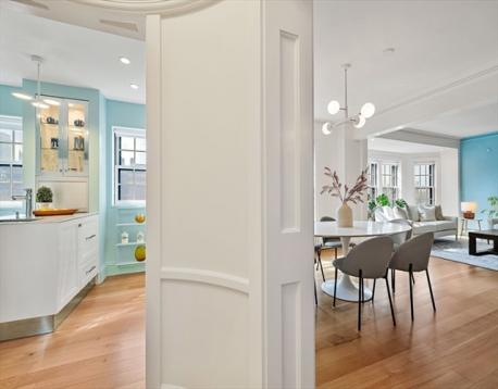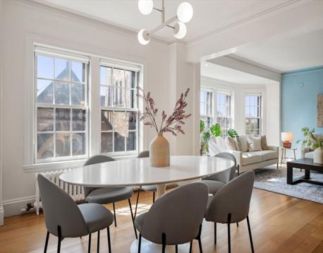 Situated in a desirable New York style building, this sunny 7th floor unit offers the best in city living: elegant living spaces, elevator, live-in superintendent, a fantastic layout w/ nicely sized rooms complemented by 13 windows, all featuring an outstanding Western exposure. A tastefully renovated kitchen features notable Subzero, Wolf and Miele appliances, streamlined chrome & glass cabinetry and stone counters. The expansive & versatile living/dining room features 26x24 dimensions allowing for several seating areas & dining options accented by a built-in buffet w/ stone countertop, lovely bay window & beautiful rift quarter sawn white oak flooring throughout. The blue skies and surrounding architecture offer privacy. Two bedrooms, both offering tasteful, ensuite bathrooms w/ marble tile, are generous in size. A welcoming entry foyer, powder room, in-unit laundry, and private storage closet are only a few of the many highlights making this luxurious condominium a standout home.
