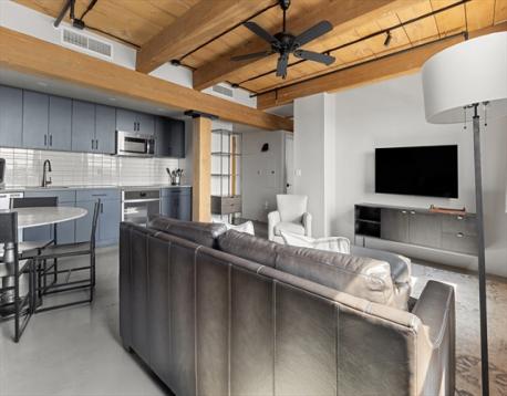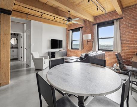 Built in 1900 this stylish brick-and-beam one-bedroom loft is in the heart of the South End’s vibrant SoWa arts district. A spacious layout offers a large living room with dining area, soaring wood beam ceilings, exposed brick, and polished concrete floors. The sleek open kitchen features granite counters, subway tile backsplash, refinished cabinetry, and new stainless steel appliances. The oversized bedroom boasts two large windows and new custom closet space. Additional highlights include central air, in-unit laundry, and deeded parking (#4). 90 Wareham is a boutique elevator building with a modern industrial lobby, ideally located among SoWa’s celebrated art studios, seasonal open market, fitness options, Whole Foods, top restaurants, and the Silver Line, with easy access to the Mass Pike and I-93.