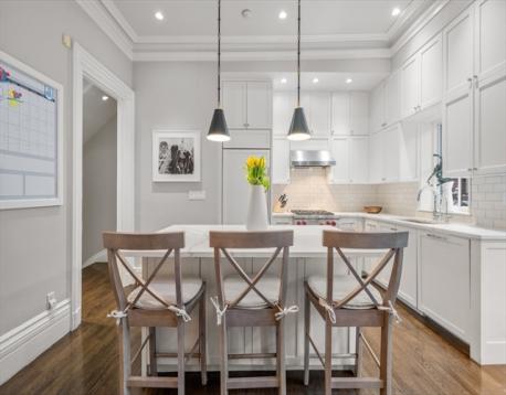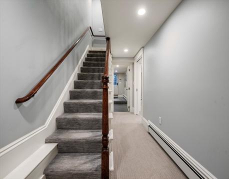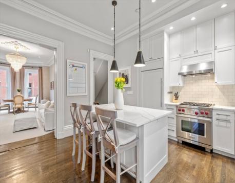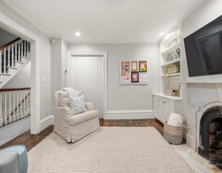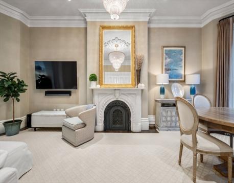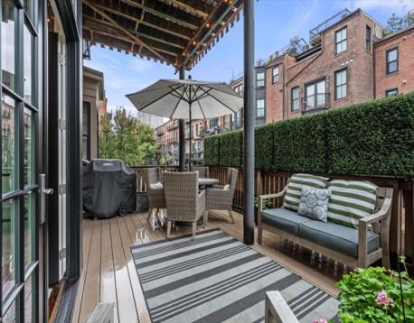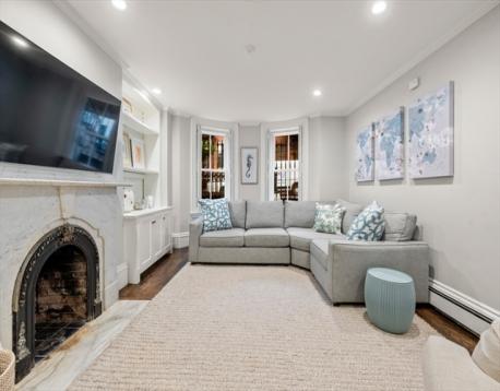 A hybrid of “Boston Classic” & modern detail in this pristine parlor to garden triplex offering 3+ beds, 2.5 baths, 20’-9” x 13’-10” deck off the kitchen (plumbed for gas/water), patio and direct access to 2 parking spaces. Entry foyer opens into double-parlor with high ceilings, dining area with gas fireplace and original detail including the marble mantel, moldings & pocket doors. Attention to detail was used in designing the spacious kitchen offering double stack cabinetry, quartz counters, subway tile backsplash, professional grade appliances and floating island. This home offers a bow-front family room with custom-built-ins, designated home office and a primary bedroom with walk-in closet & en-suite bath. Features include 2 spacious guest beds, a/c, walnut stained h/w floors, custom window treatments, generous storage and mudroom with built-in cabinetry, w/d & sink. This condo comes with roof rights giving the owner a unique opportunity to build a private roof deck with City Views