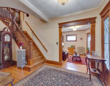 This distinguished Victorian, 11 room, 2 bath,1899 residence on South St. (formerly known as Doctor's Row) is being offered for 1st time in over 30 yrs. It's 3500 sq.ft. of spectacular, generous room sizes & 7,500 sq.ft. lot is enhanced by the home's high ceilings, breathtaking foyer w/its welcoming veranda, a dramatic staircase spauling its 3 levels of living area. The architectural details are outstanding and hard pressed to find in today's inventory. Current owner has maintained & restored its sophistication of the gorgeous molding, flooring & some mechanical systems, including gas heating system, water heater, roof (11 years) & replacement windows (2008). The 2nd floor's bathroom recently remodeled (2024) w/walk in shower & flooring w/radiant heat. Full basement w/finished rec room is bonus. Short walk to public transportation, stores, restaurants & steps to desired Fallon Park, don't overlook the luxury of a 1-car garage w/ample driveway. Kitchen and 1st floor bath need love.