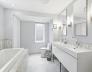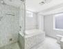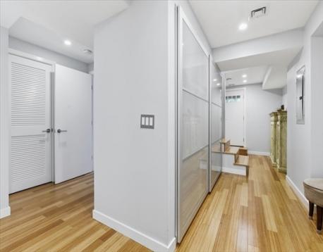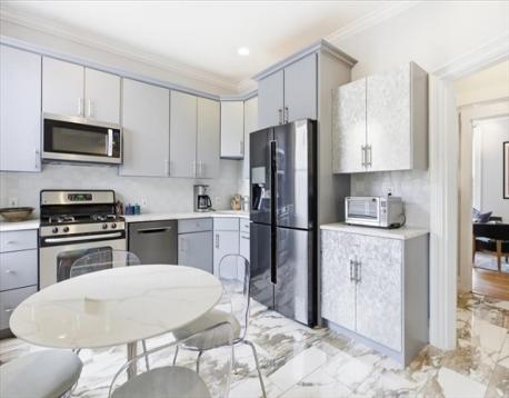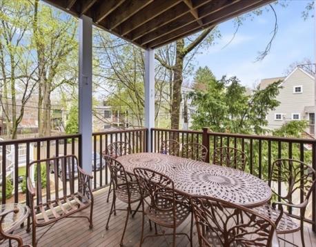 A 1905 Jamaica Plain condo that doesn't ask you to choose. The refresh touched everything that mattered: a rebuilt kitchen with European cabinetry, mother-of-pearl accents, marble counters, and Calacatta tile floors; fresh paint throughout; and a private backyard opened back up after the old bamboo fence came down. The main floor holds the living space, two bedrooms, a full bath, and a private covered deck off the kitchen; the garden-level primary suite is where the rest of your day goes quiet — integrated wardrobes, a radiant-heat marble bath with dual sinks and a jetted tub, and a door that walks out to your own private yard. Not a shared deck. Not a patio. A yard. Central AC, tankless hot water, in-unit laundry, and private oversized storage. One year of rented off-street parking included. Pet-friendly. Steps to Green Street, Centre Street's shops and restaurants, Jamaica Pond, and the Arboretum — the kind of neighborhood that still remembers how to be a neighborhood.