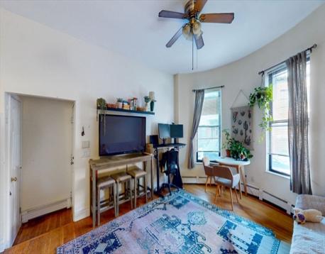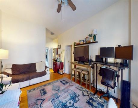 Sunny parlor-level two-bedroom residence on a picturesque, tree-lined South End street. This classic brownstone home offers an open-concept living and dining area ideal for entertaining, complemented by high ceilings and hardwood floors throughout. The updated kitchen features stainless steel appliances, granite countertops, and cherry cabinetry. The newly renovated bathroom is finished with elegant natural travertine stone.The spacious primary bedroom provides excellent closet space and opens to a large, private walk-out deck. The second bedroom is well suited for a home office or guest room. Ideally located in the South End with convenient access to BOSTON UNIVERSITY MEDICAL COMPUS, Foodies, Whole Foods, Stella, Toro, and Blackstone Park. Laundry in the building and pet-friendly.