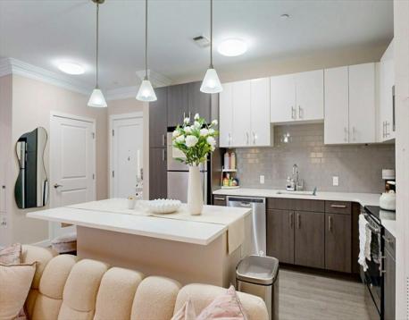 This sophisticated 2018-construction condominium, ideally located between Brighton’s Oak Square and Newton Corner, offers refined urban living with peaceful courtyard views. The two-bedroom, two-bathroom residence has been thoughtfully updated with elegant crown moldings, fresh professional paint, and new hardwood floors in the primary suite. The open-concept layout includes a chef-inspired kitchen with a large center island and generous walk-in closets and washer/dryer in unit. Rare for the area, this unit includes two-car garage parking and deeded storage. The building’s amenities feature on-site management, a fitness center, a club lounge with a catering kitchen, a billiard room, a media room, and a common courtyard with grilling stations. This pet-friendly community also provides a dedicated pet washing station, and bike storage. This location provides rapid access to downtown Boston, local dining, and major transit routes.