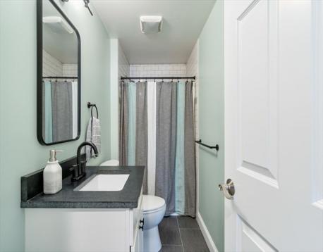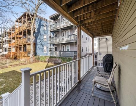 Beautiful condo located in Dorchester’s Savin Hill neighborhood. This recently remodeled 3 bedroom home has an open concept kitchen and living room with plenty of light and high ceilings. The kitchen features stainless steel Bosch appliances, stone countertops and is large enough for a dining table. The large primary bedroom features a walk-in closet and en-suite bath with soaking tub. There are two additional bedrooms with plenty of closet space and share a full bath with shower. There is central A/C throughout and full size laundry. A private rear deck leads to a large shared yard as well. Carpet in bedrooms was replaced in 2024.
