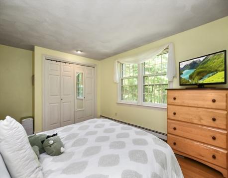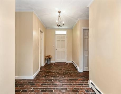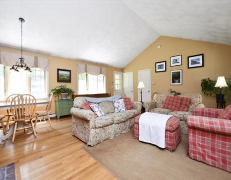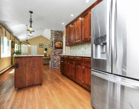 Welcome to Boxford! This charming home offers 4 bedrooms and 2.5 baths. The open floor plan allows natural light to flood the space from the living room into the kitchen. The warm feeling continues with an oversized brick fireplace and sliders to your 3-season porch. Charm continues with brick flooring, hardwoods and custom built-ins adding character and style to every room. Vaulted ceilings and classic design create an airy atmosphere. Retreat to the primary bedroom oasis, where you'll find a spacious closet, an en suite bath boasting a dual vanity and linen closet. Ample space available in a basement ready to be utilized for abundant storage or whatever best fits your lifestyle. Outdoor enthusiasts will love the 2-acre, flat yard with 2 patio spaces, raised garden beds, blackberries, raspberries and apple trees. Don't miss out on this amazing home! Septic installed 2024. New windows in 3 season enclosed porch installed 2025. New Furnace installed 2026.