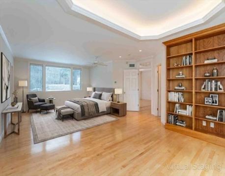 Breathtaking Custom 8 room Contemporary overlooking Stevens Pond. Banquet size grand cathedral family room w/ dramatic floor to ceiling windows, maple floors, and fireplace. Open concept Kitchen/ family room boasts granite counters, maple floors, custom cabinets, and breakfast bar. The family room with a gas fireplace looks out to a stone patio overlooking Stevens pond. The formal dinning room boasts a lighted tray ceiling, maple floors-in laid cherry trim, lighted built-in china cabinets, crown mldgs w/ dentil trim. Spacious primary suite offers a lighted tray ceiling, custom cherry bookcases, walk-in closets, and a luxurious marble master bath w/ with whirlpool tub, corner shower, and double sinks. The east wing features 3 generous bedrooms, w/ custom closets with built in cabinets and full bath with a corian counter and double sinks. Deeded frontage and dock permit on Stevens pond completes this exceptional property. Open house 1/7 5:00-6:30, 1/10 10:30-12:00, 1/11 12:00-1:30
