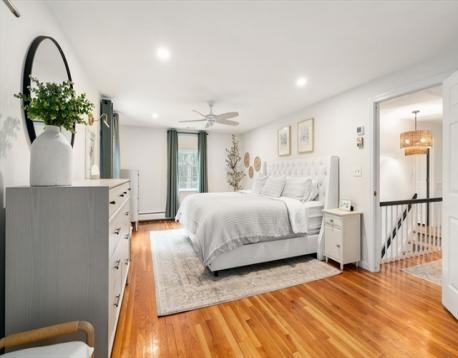 Welcome to your Dream House in the highly sought-after Tri -Town community! Beautifully designed this 4 bedroom/2.5 bath in desirable East Boxford gives you all the privacy of two lovely acres while still close to the Topsfield Line and Route 95 for an easy commute. The dramatic great room will be your hub of family life and entertaining: Highlighted by a floor to ceiling stone fireplace & cathedral ceilings this stunning space opens to the eat in kitchen w/ gleaming white stone countertops, warm cherry cabinets & stainless appliances inc gas cooking. Formal dining flows from the kitchen and the living room is graced by a second fireplace, crown moldings and charming window seat. Upstairs are four spacious bedrooms inc primary with en-suite & double closet. Full height basement with room to expand. Convenient mudroom leads to a spacious deck with step down to the patio ideal for grilling and fire pit evenings. Boundless yard space creates privacy front and back and has pool potential!